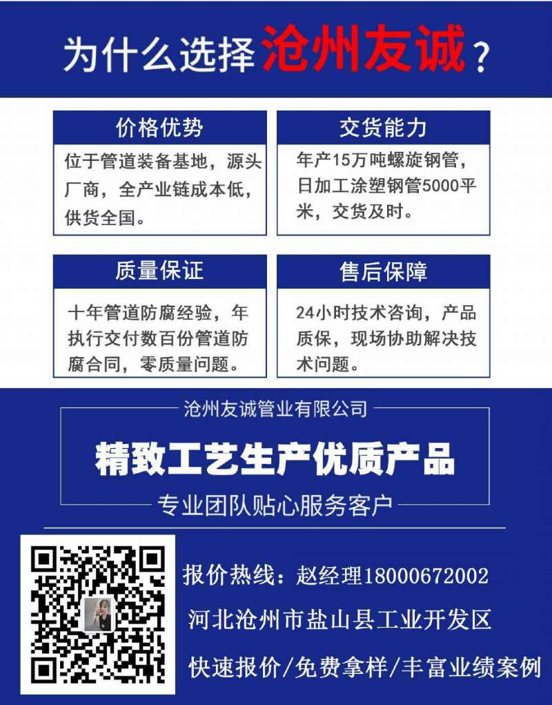 、形狀的焊接鋼管,大口徑厚壁卷管直徑400mm起可生產(chǎn)3米直徑厚度100mm的焊接剛,滿足您各種需求。讓您滿意是不懈的追求!螺旋鋼管用途廣泛,自來(lái)水施工用螺旋鋼管,自來(lái)水工程用螺旋鋼管,飲水工程用大口徑螺旋鋼管,Q235B螺旋鋼管,飲用水專用Q235B螺旋鋼管,***管道用防腐螺旋鋼管,飲水***防腐螺旋鋼管,我廠常年存有大量管材。廠家決定:一律執(zhí)行批發(fā),無(wú)論您的需求或多或少少,統(tǒng)一價(jià)格,廠家提供貨運(yùn)。讓您買的順心,用的放心,并且我們跟蹤服務(wù),讓您絕無(wú)后顧之憂!